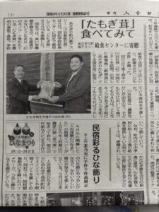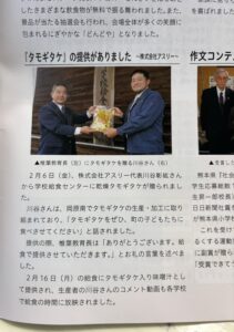 このたび、あさぎり町学校給食センター 様へ、当社の乾燥たもぎ茸を寄付させていただきました。